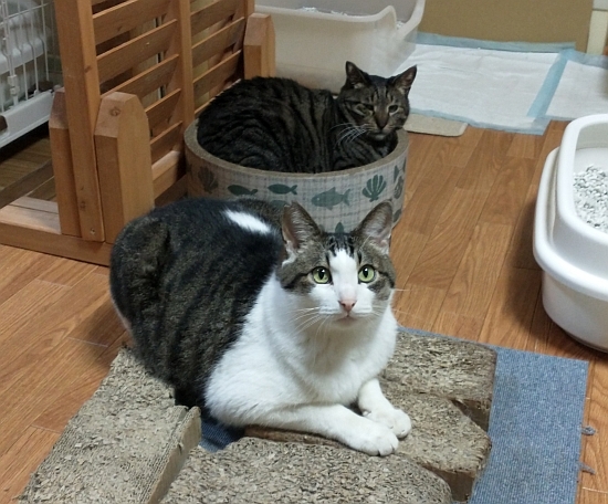 2匹ともかつては猫の往来が多い地域で暮らしていたせいか、常に気が張っているような表情をしていましたが、今では穏やかな良い表情になりました。
