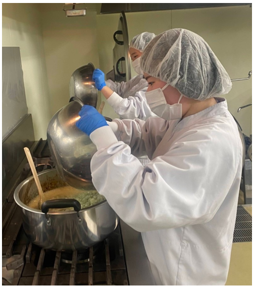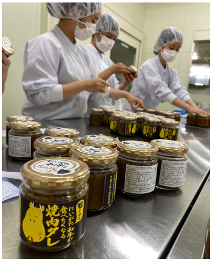 目標を達成した後、写真のようにタレを製造し、全部で500本も作ることができました!すべての工程を5人で行っていたので大変でしたが、回数を重ねるにつれてどんどん手際が良くなっていきました。