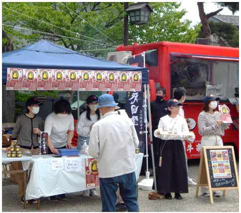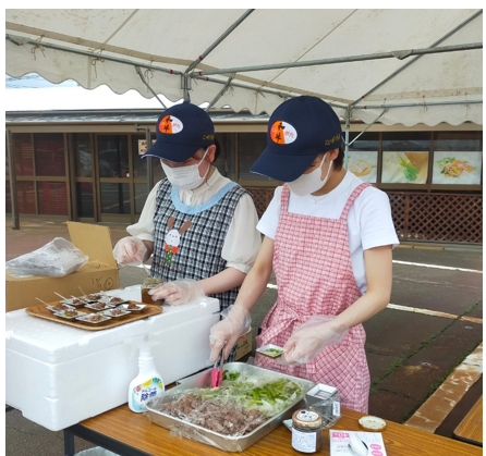 初めての販売でしたが、目標の2倍の個数の98本を売ることができました。「テレビ見て買いに来たよ!」と声をかけて下さる方もいて嬉かったです!また、お隣のキッチンカーの新発田牛のお弁当ともコラボしました!
