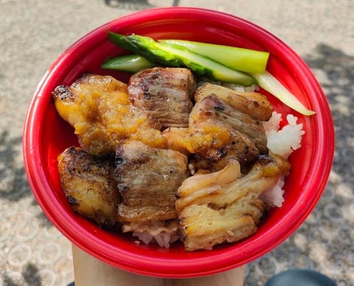 学食とのコラボでは「塩ダレ豚丼」として提供していました。3日間の販売で120食と数も限られていましたが、毎日長い列ができ、すぐに完売していたので私たちも驚きました!