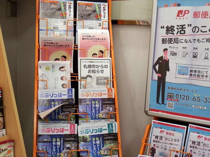 札幌大通郵便局で、有珠にゅうす号外を配布中です。