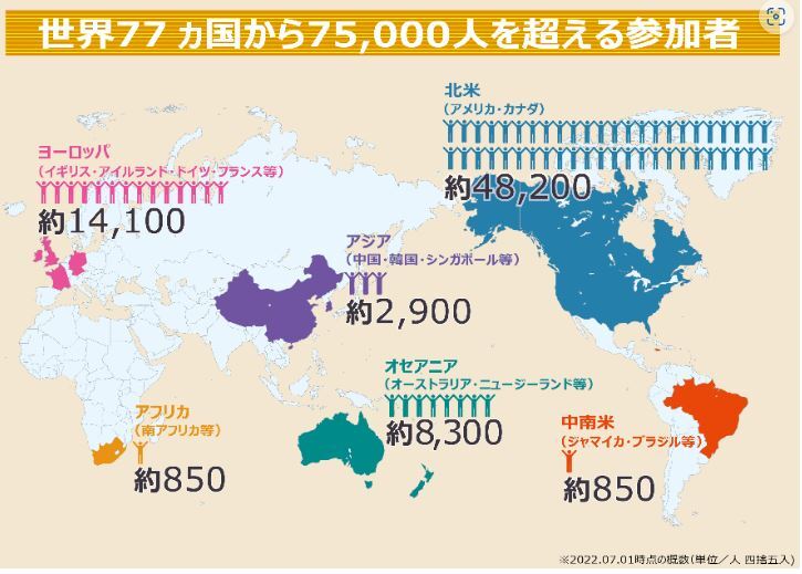 1987年のプログラム開始から現在まで、77カ国から75,000人が参加しているビッグプロジェクトです(現在の毎年の参加者は、約2,000人)。
