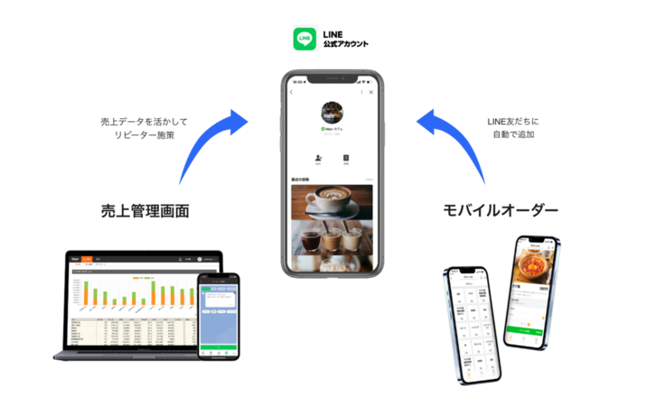 QRコードを読み取ると、モバイルオーダーが立ち上がり自動的に友達登録!