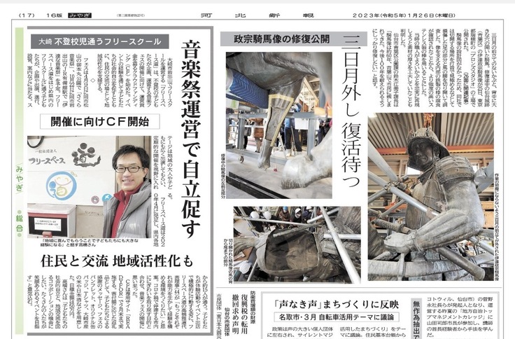 先日、宮城県の地方新聞紙「河北新報」に、今回のクラウドファンディングに関する記事が掲載されました。