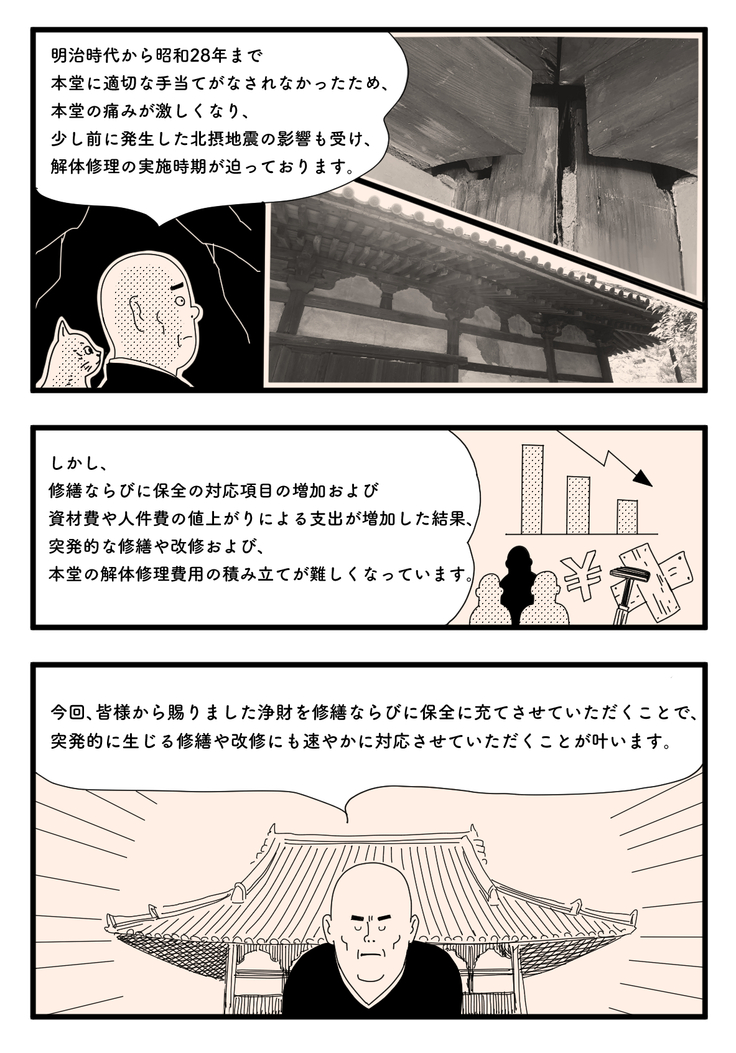 今回、いただきましたご支援は『建造物の修繕』および『お寺の保全』にかかる資金として活用させていただきます。