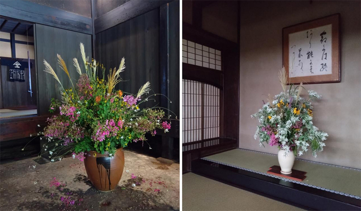 野山、畑・花壇から集めた草花を主屋各所に。