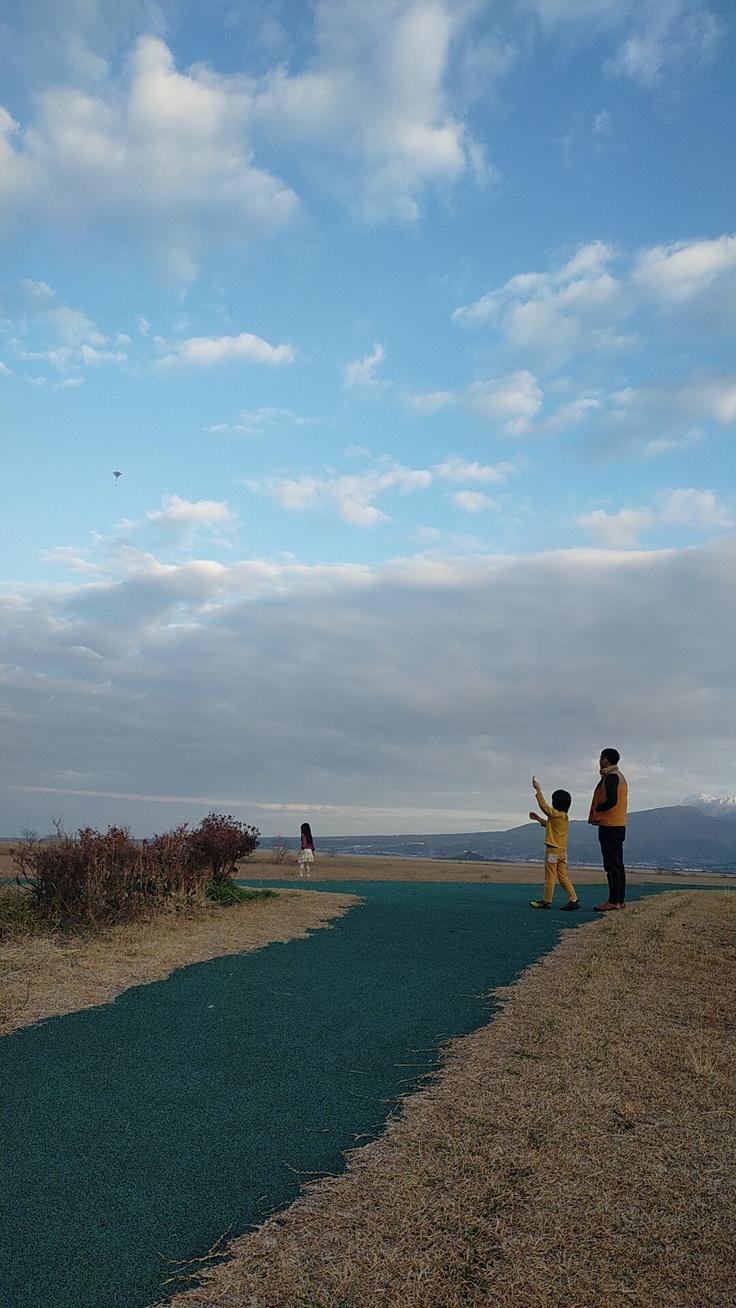電柱もなく、周辺は田んぼと調整池です。一直線に真っ直ぐな堤防があり、密集した中での凧揚げとは違う環境です。