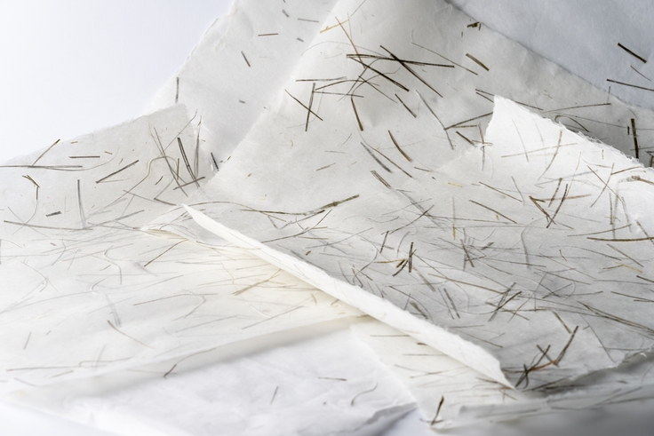 そんなときに、伝統工芸の和紙に混ぜてみたら面白いのではないかと思いました。和紙は、コウゾウと言う原料を使うのですが、そこに葦を混ぜて和紙を作ってもらい、ここに「伝統工芸の和紙×葦」が誕生しました。非常に趣があり魅力ある和紙になりました。