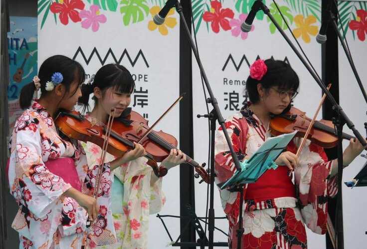 (大槌子どもオーケストラ 浪板ビーチフェスで演奏 ©FESJ2022)