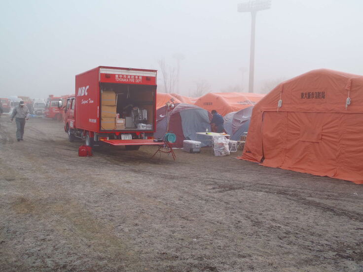 (大槌町に派遣された豊中市の消防隊:写真は豊中市役所提供)