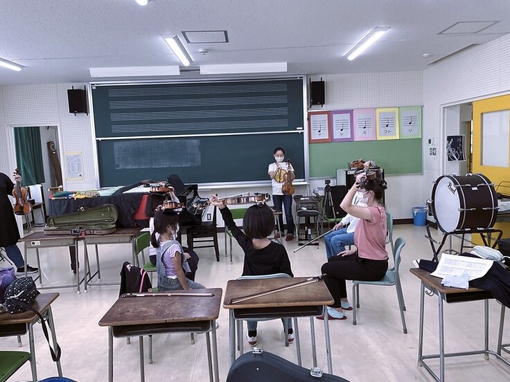 人口減少が進む市南部庄内地区の活性化を目指し、豊中市が進める小・中学校の統廃合を経て設立される庄内さくら学園の放課後支援事業「まちごと暮らスクール」の音楽部門として、10月から庄内・野田小学校と島田小学校にて弦楽器教室の運営が始まっていますが、その仕組みのモデルとされたのが、大槌の、誰もが無料で参加でき、仲間とともに楽しく学べる放課後弦楽器教室でした。