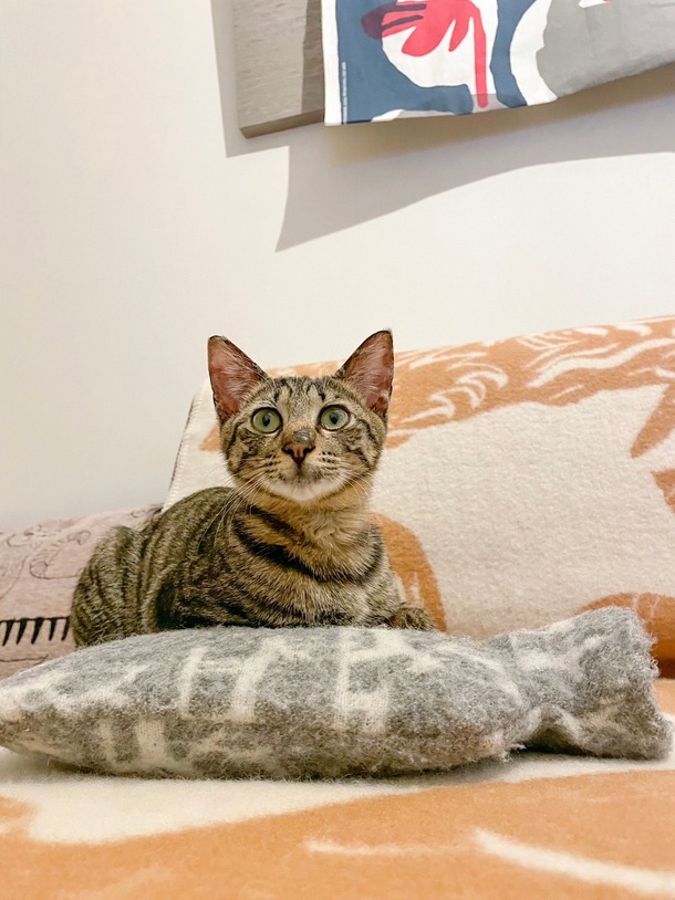朝からゆたんぽに上手に乗っかり、ばっちりカメラ目線でにっこりなはるくんでおはようございます😺