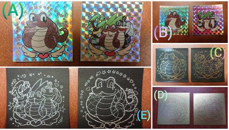 (D)は黒艶無し台紙にホログラム箔押し
