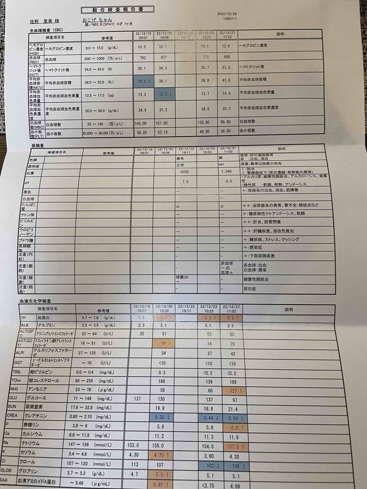 初回検査時に140あったSAAは、投薬開始3日後には8.81まで落ち、12月末には平常値まで落ち着きました。