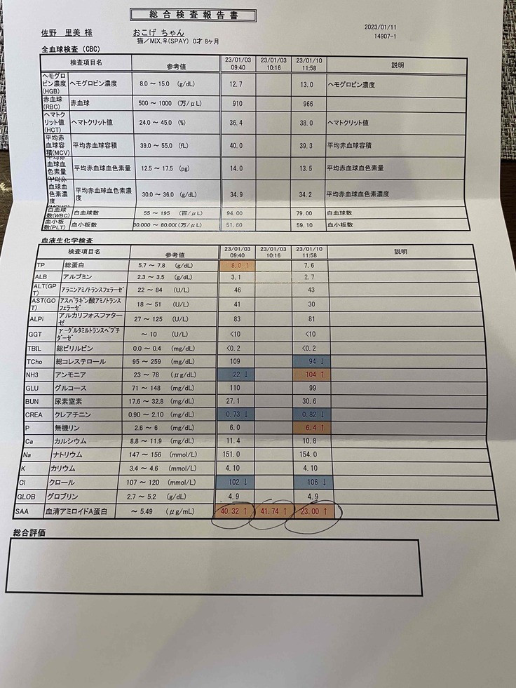 現在は週1回検査を行い、入院、投与しながらの経過観察となっています。