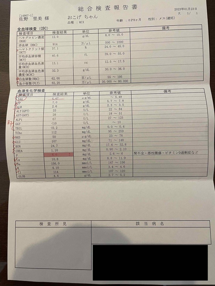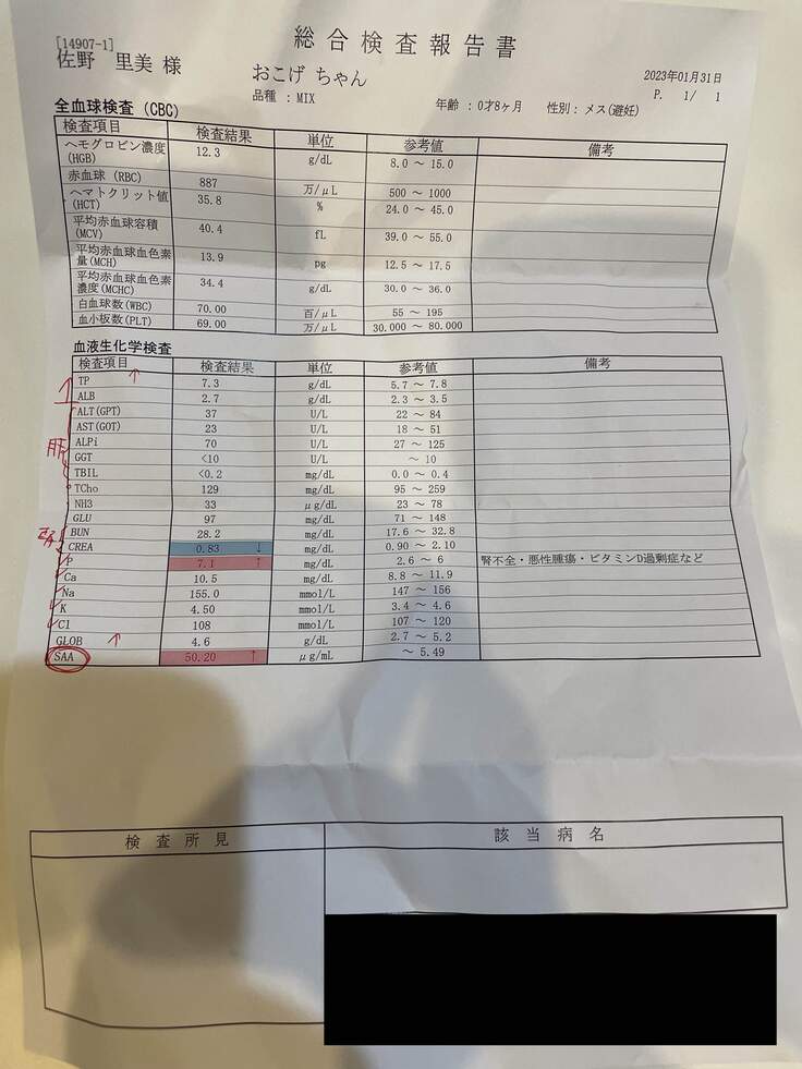 おこげ本人は元気に見えますが、SAAの値がやはり高く出てしまうので、
