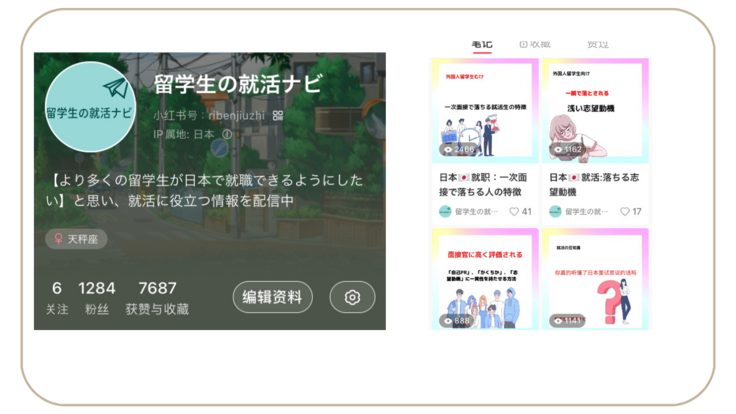 主に中国人留学生向けに、就活の情報をSNS(小紅書)で発信しています。今後YouTubeを通しても就活の情報を配信する予定です。