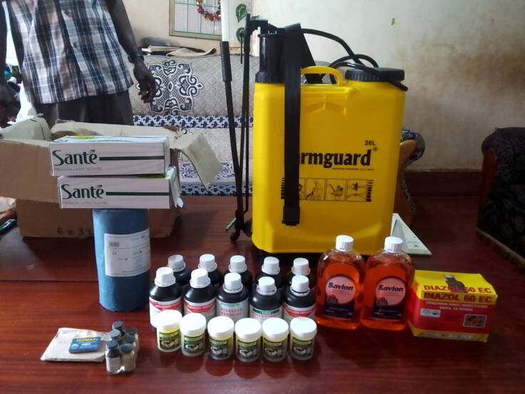 また、スナノミ症が再発しないよう、患者さんの家の床や壁を消毒するための殺虫剤として、DeasolとHydrogen Peroxideという薬品を今回のキャンペーンで用いました。