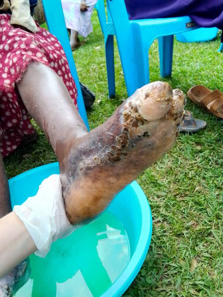 私自身、写真では何度もスナノミに罹患した手足を見ていましたが、今回はじめて生でスナノミを見て、治療をする子どもたちの顔を見てショックで言葉が出ませんでした。