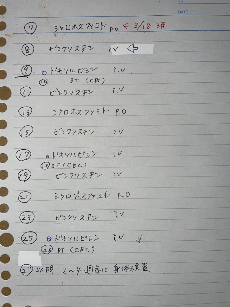 先生から頂いた今後の抗がん剤治療スケジュールです