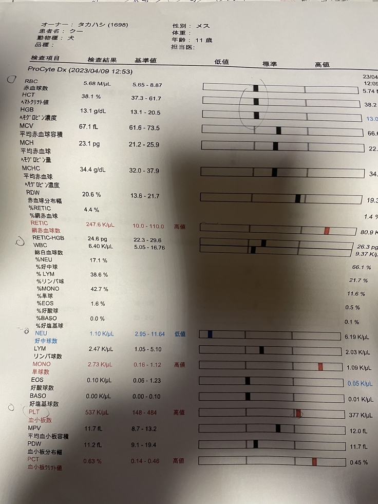 クゥは好中球、白血球のみでかなり頑丈だと言われました、