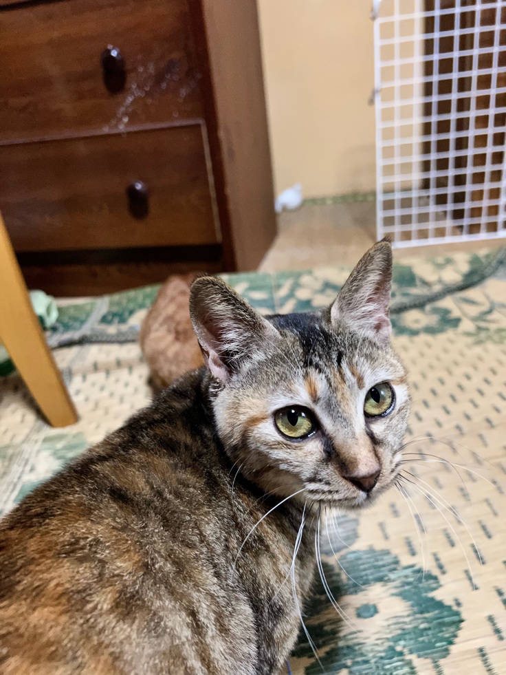 激烈甘えん坊な女の子。かまってくれるまで永久に泣き続けます。トイレ掃除やご飯の準備中も、ひたすらスリスリ、目の前に来て邪魔する、飛び乗ってくるなど凄い愛情表現です。人見知りなんて言葉も知りません。ご飯もたくさん食べて元気いっぱい!ただお医者様曰く、妊娠しているかもしれないとの事。新しい命が生まれてきても、我が家で責任もって面倒を見ていきます(^^)