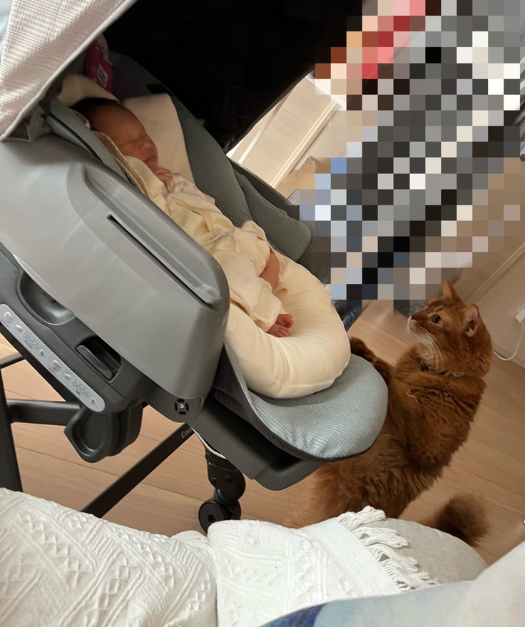 【娘とパトラ。洗濯物が写っているためモザイクをかけています】
