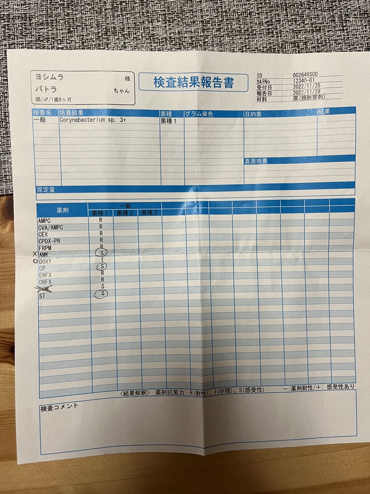 膀胱炎は再発しやすく、特に雄であるため、覚悟はしておりましたので、すぐに病院へ。やはりまたストルバイトが詰まっており、除去の処置と薬を処方していただきました。