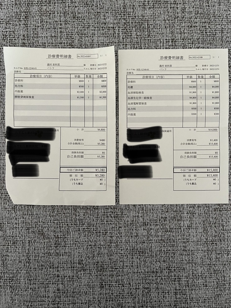 ページ上に掲載している診断書や診療明細書などの資料は全て動物病院から掲載の許諾を得ております。
