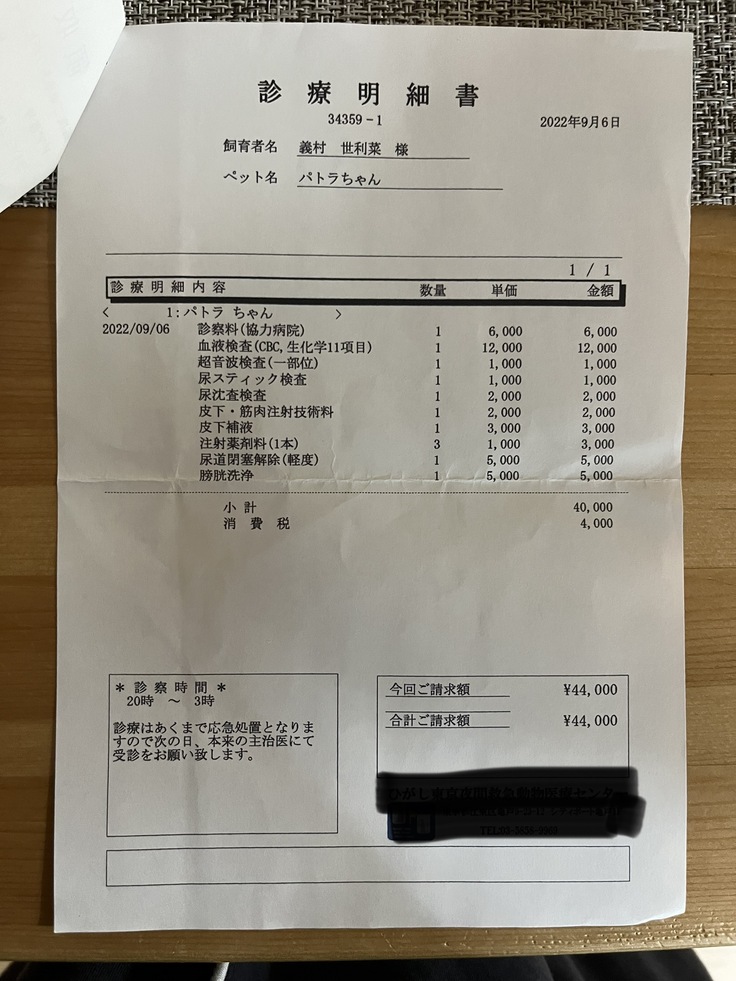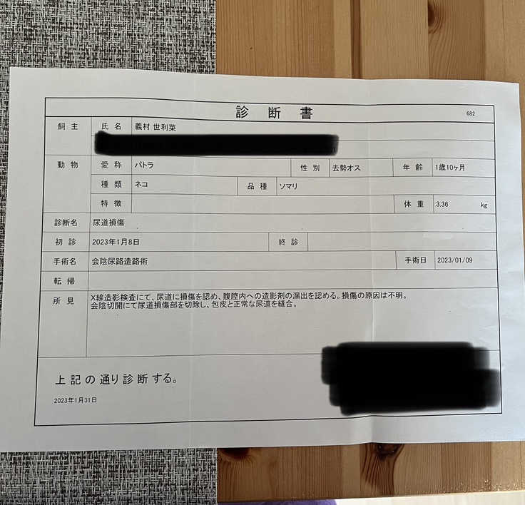 パトラには十分な治療を受けさせ、よく食べよく遊びストレスなく排泄ができる、そんな普通の生活をして欲しいと、家族一同心から思っております。