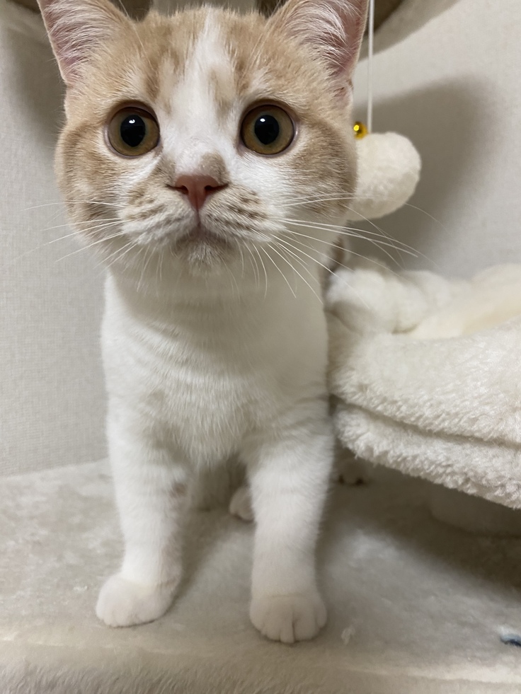 目がまん丸で、触るともちもちしていて、はじめて会ったにも関わらず喉をグルグル鳴らしながら抱っこをさせてくれ、それが可愛くて12月12日に家族になりました。