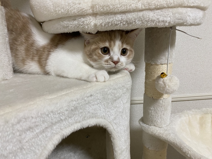 キャットタワーに登るのが大好きなもちまる。本当に可愛くて仕方ないです。