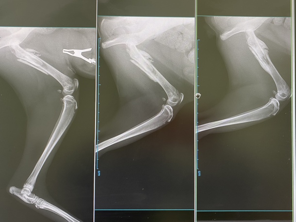 割れてしまった所が、くっついて太くなっているのがわかります。先生曰く、骨は短くなってしまったけれどその分太く、そして強くなったとのこと💪