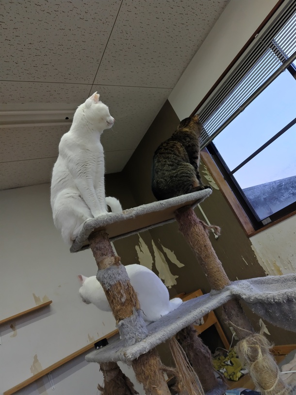 お外が気になるシロくんとトラちゃん🥰