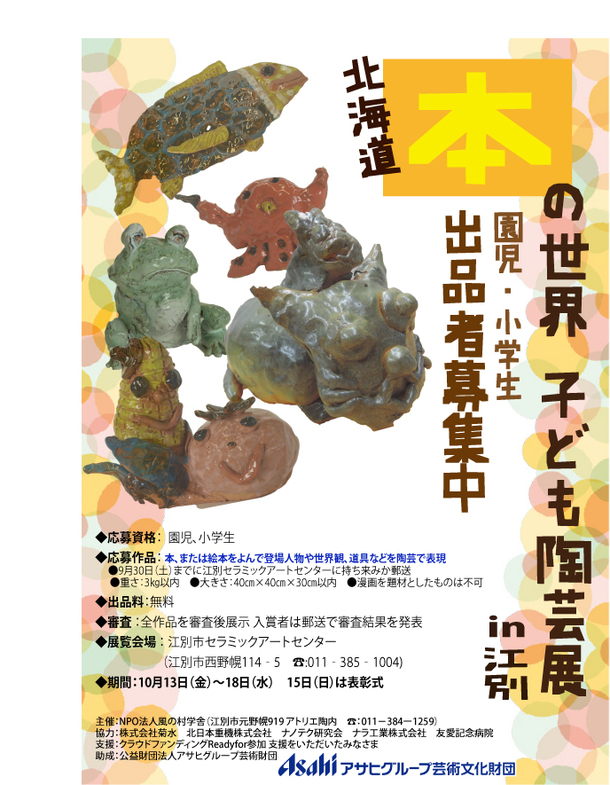 皆さまからご支援頂いた資金は、全額「北海道本の世界 子ども陶芸展」のために使用させていただきます。助成金とあわせ、2年目も開催します。