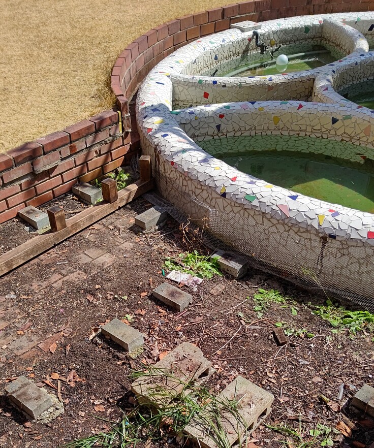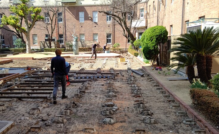 噴水の前の写真の右手の土の下に排水枡がありましたが、こんな感じで完璧に埋まっていました。