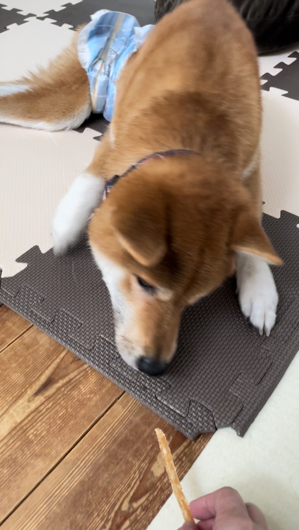 今日のめご丸の状況ですが、おやつを見せると昨日より長い距離を前に進むことができました!