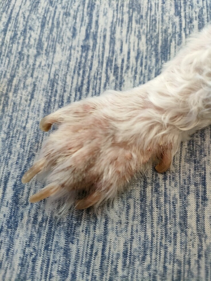 カットしてみると、いつも手足舐めていた部位に腫脹と湿疹がでています