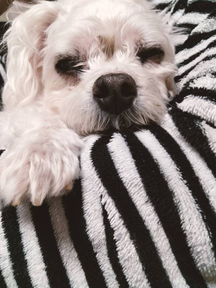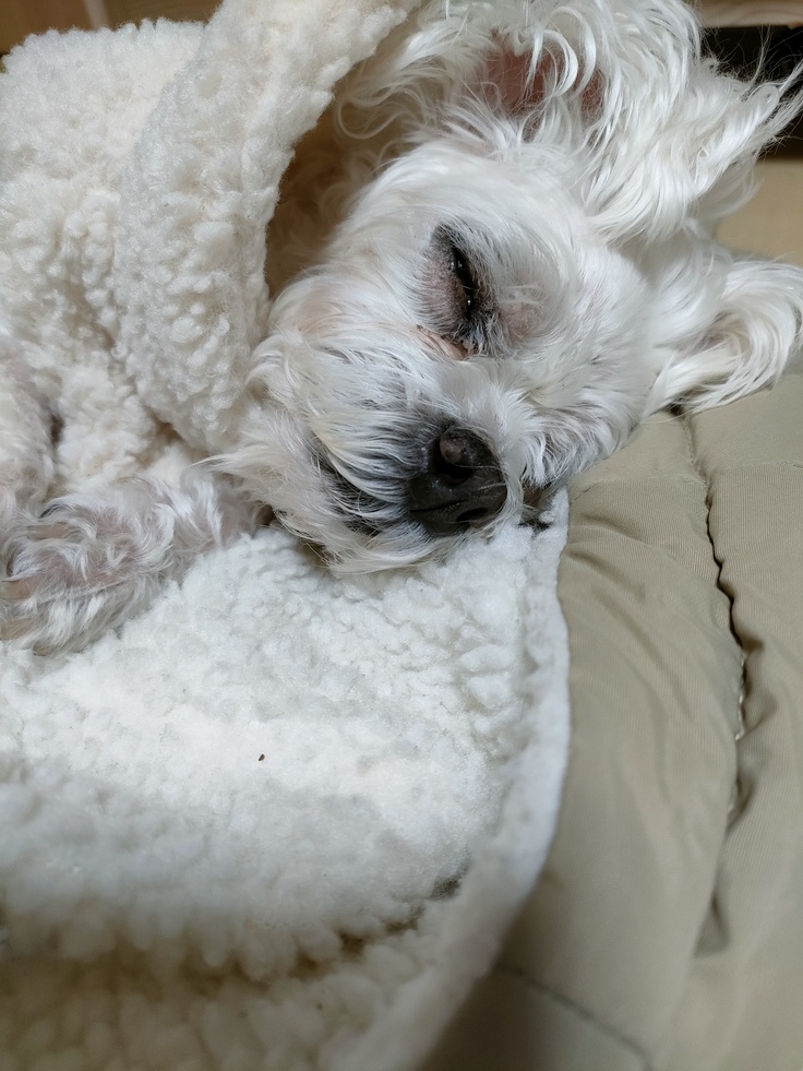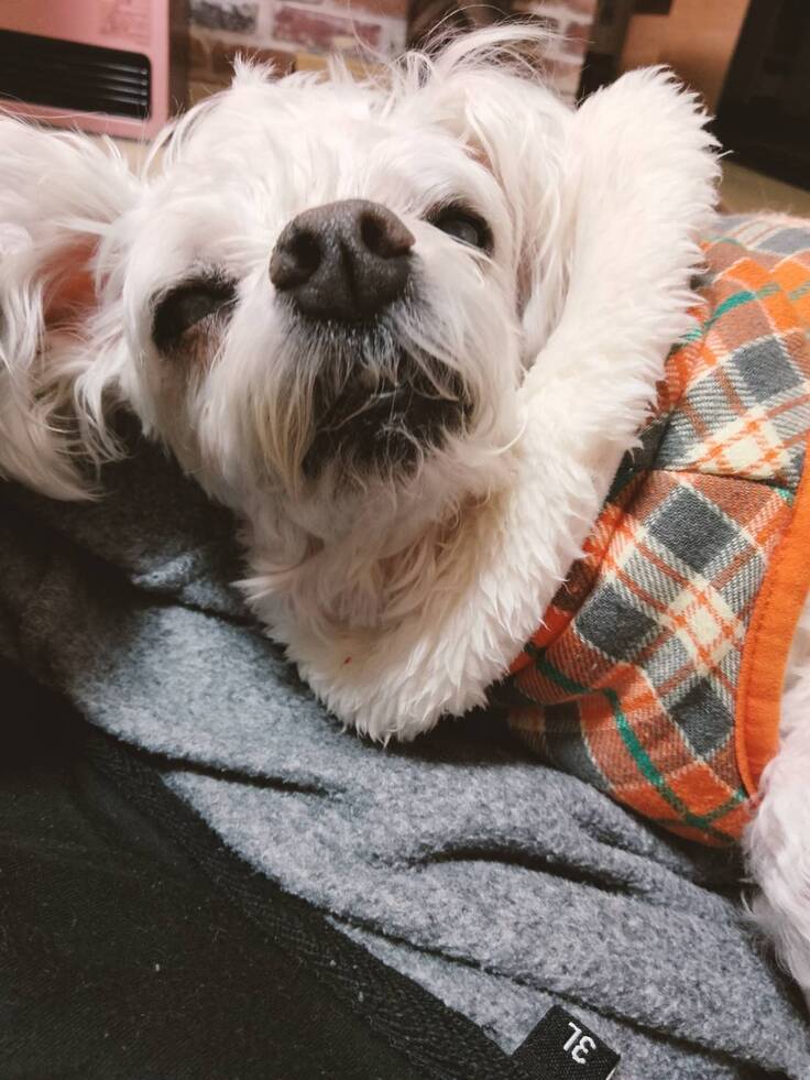 はなこちゃん抱っこされながらウトウトしているところです💤