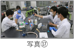 プログラムの後半は、糖尿病を想定した模擬患者尿を用いて、尿中のブドウ糖を化学反応で検出するという実験を行いました(写真⑰)。今回の企画を通じて参加者たちは、高校化学の知識が大学でどのように活かされているのかを、身をもって感じとることができたのではないでしょうか。本コースはハイレベルな内容で、ある程度学力が高い高校生を対象にした企画でしたので、参加人数はそれほど多くはなかったですが、参加者達の将来に少なからず良い影響を与えたのではないでしょうか。