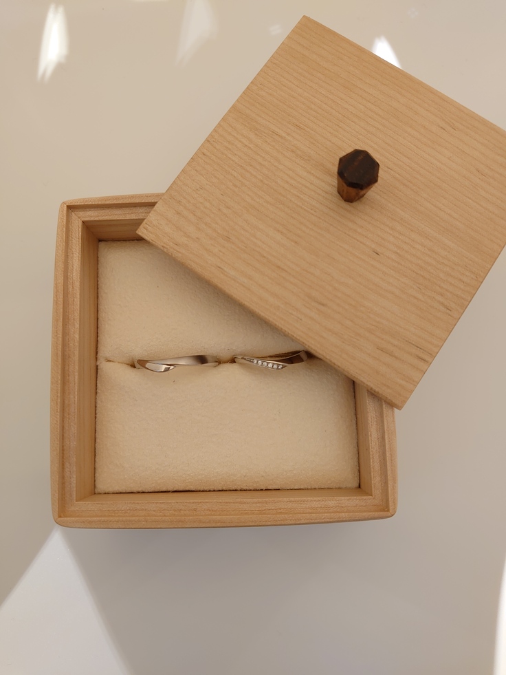 長野県産の木材を素材として、県内の木工職人の方に依頼して、一つずつ手作りで丁寧に仕上げたリングケースです。