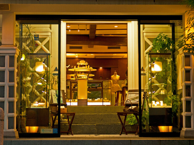 明治時代から残る蔵を曳家という方法で現在の位置に移動させた、風情あふれる漆喰の塗り壁や、なまこ壁の外観が特徴のジュエリーショップです。