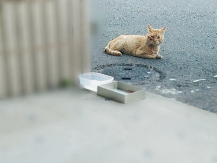 住宅街へゆっくり歩いていく茶トラの後ろ姿を遠くから発見。