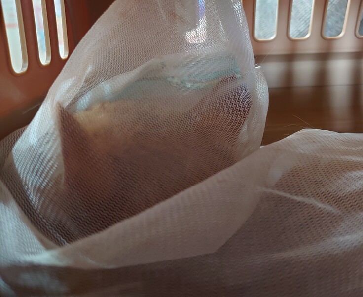 帰ってからシャンプータオルでお腹としっぽをフキフキ。。。