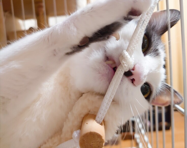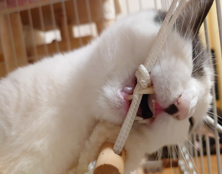 目の前にあるハンモックの紐をカミカミ。。