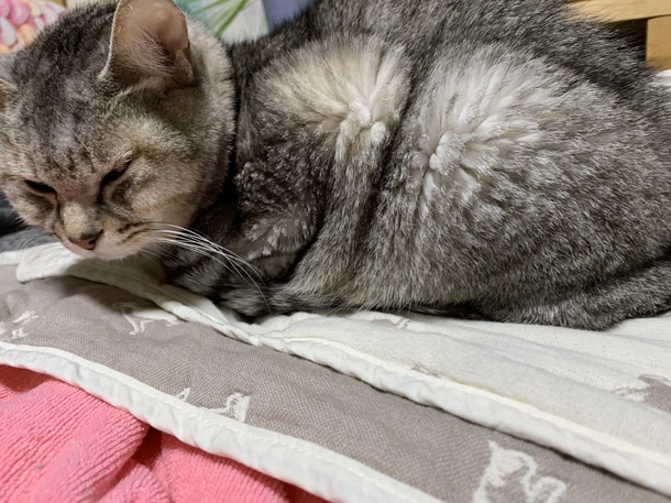 夜中に、布団を取り替えたのサラが赤ちゃんぶりでした。