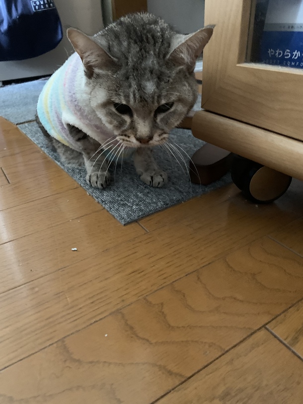 という事で、部屋の温度を上げ服を着せる事にしました。