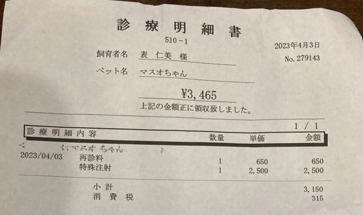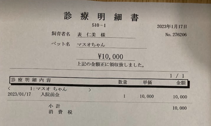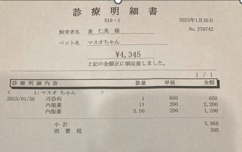 ページ上に掲載している診断書や診療明細書などの資料は全て動物病院から掲載の許諾を得