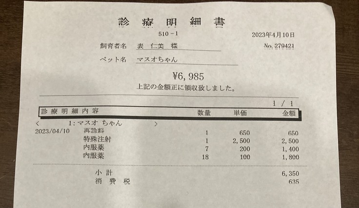 ( 領収書が表示されているものについては病院より掲載の許可を得ています。)