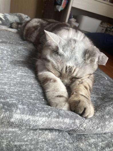 でもそれ以外は、日向ぼっこをしたり、気持ちよさそうにアンパンマン寝をしたり、穏やかな日々を過ごしています。